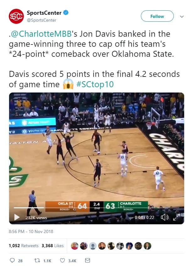 So, when he saw Jon Davis rise up over the outstretched hands of two defenders and kiss the ball off the glass for the win?